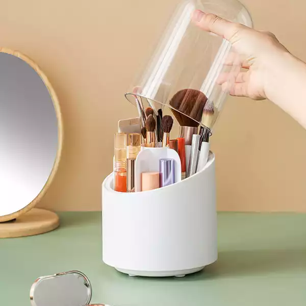 Với khả năng xoay 360 độ, bạn có thể dễ dàng lấy đồ trang điểm ở bất kỳ góc nào mà không cần phải di chuyển hộp đựng.